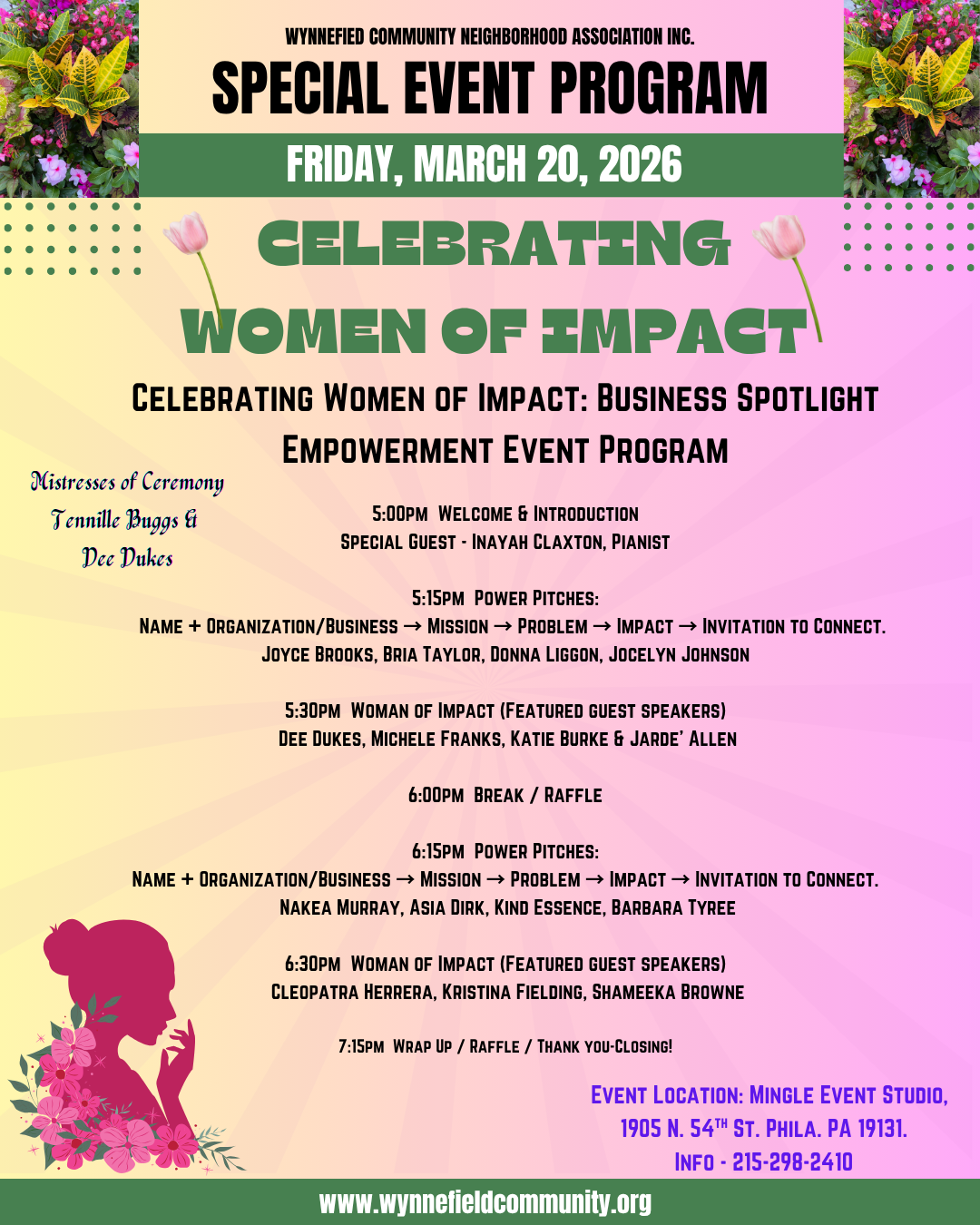 Wynnefield Community Neighborhood Association Inc. is a 501C(3) non-profit RCO, and all donations are 100% tax deductible. Click Donate to support Special events and Youth activities and programs.